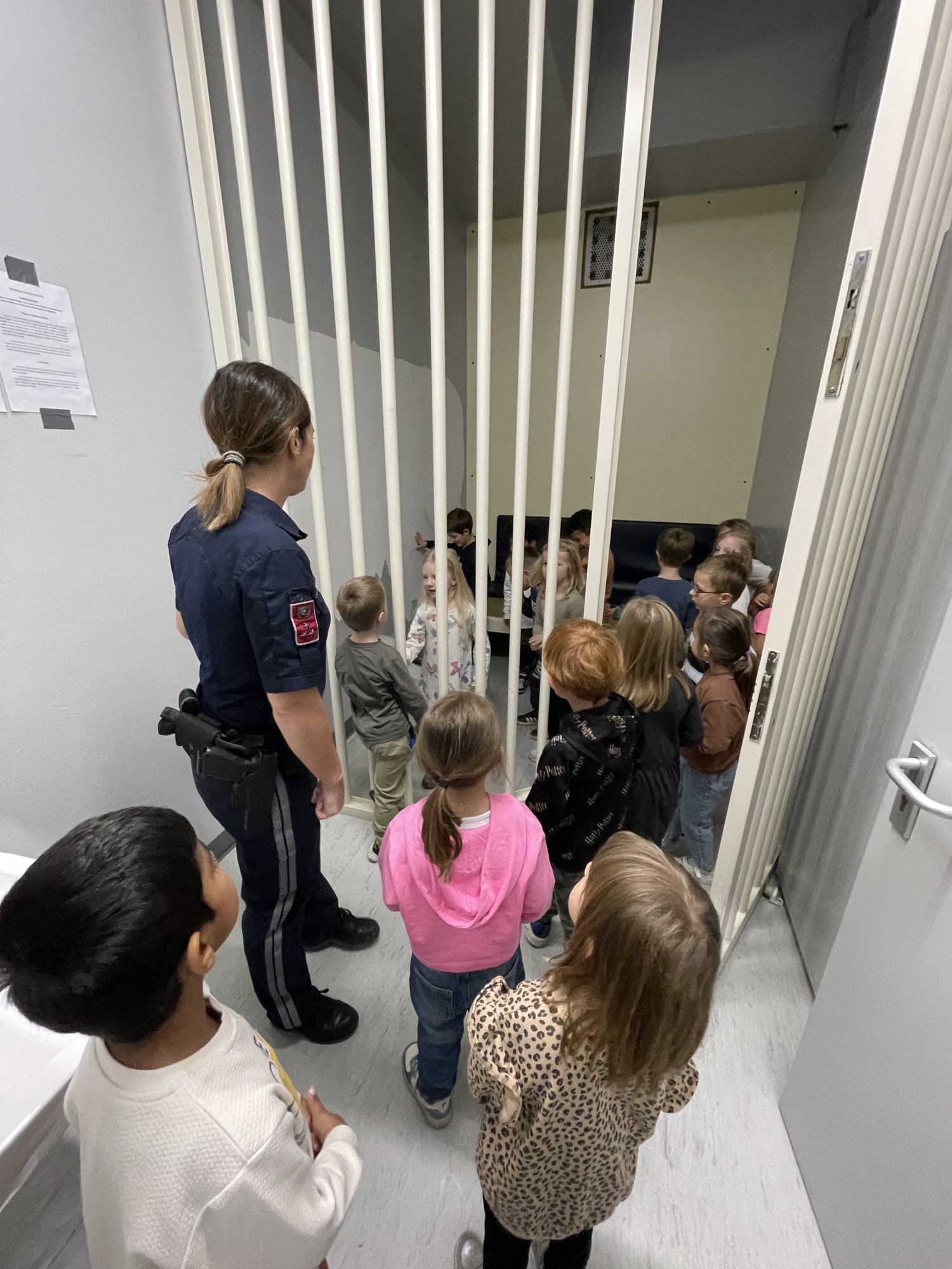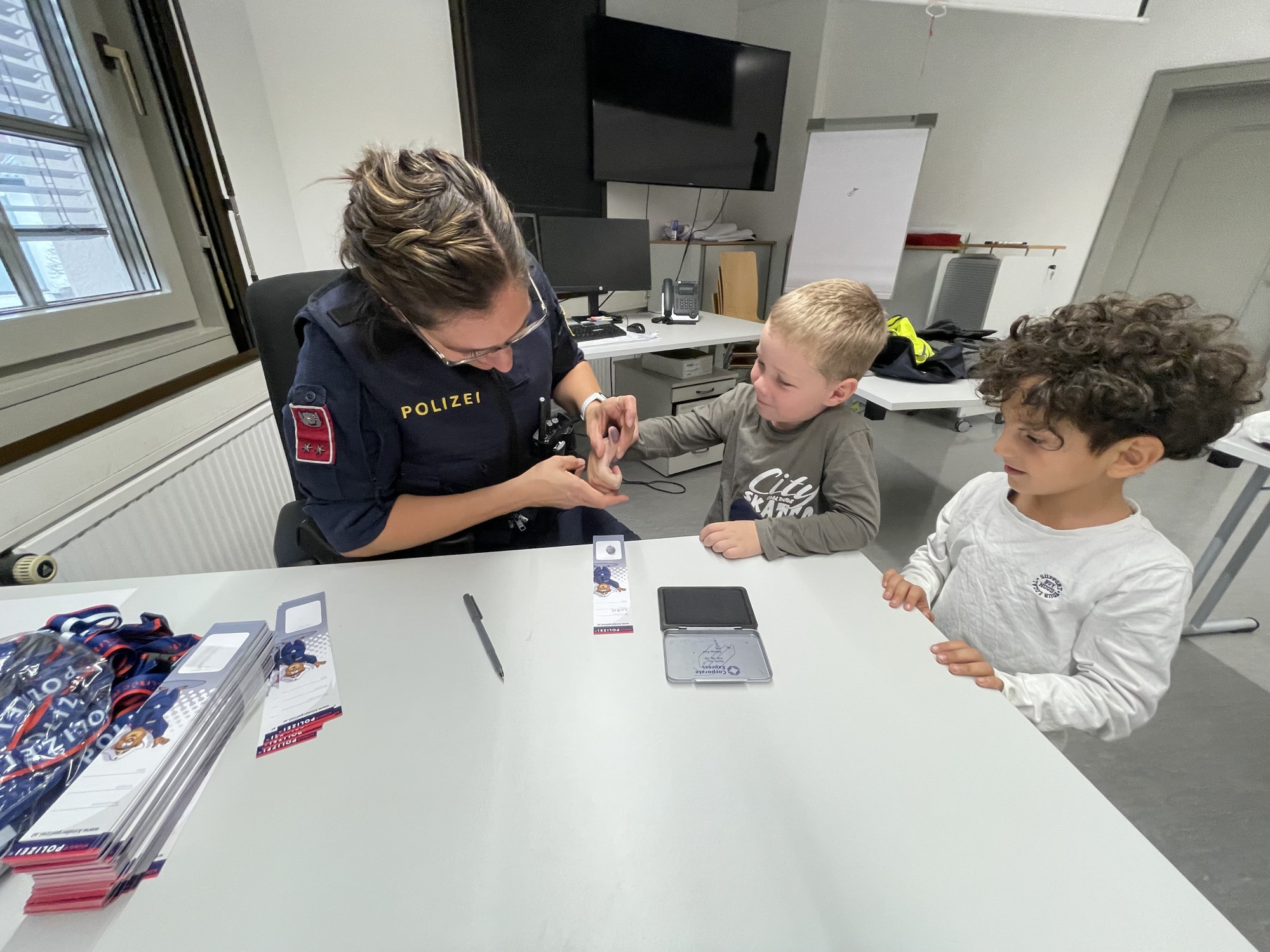 Ein Anruf in der Leitstelle, das Gefängnis, alle Materialien die ein Polizist benötigt, die Uniformen durften probiert werden und auch Fingerabdrücke wurden genommen.