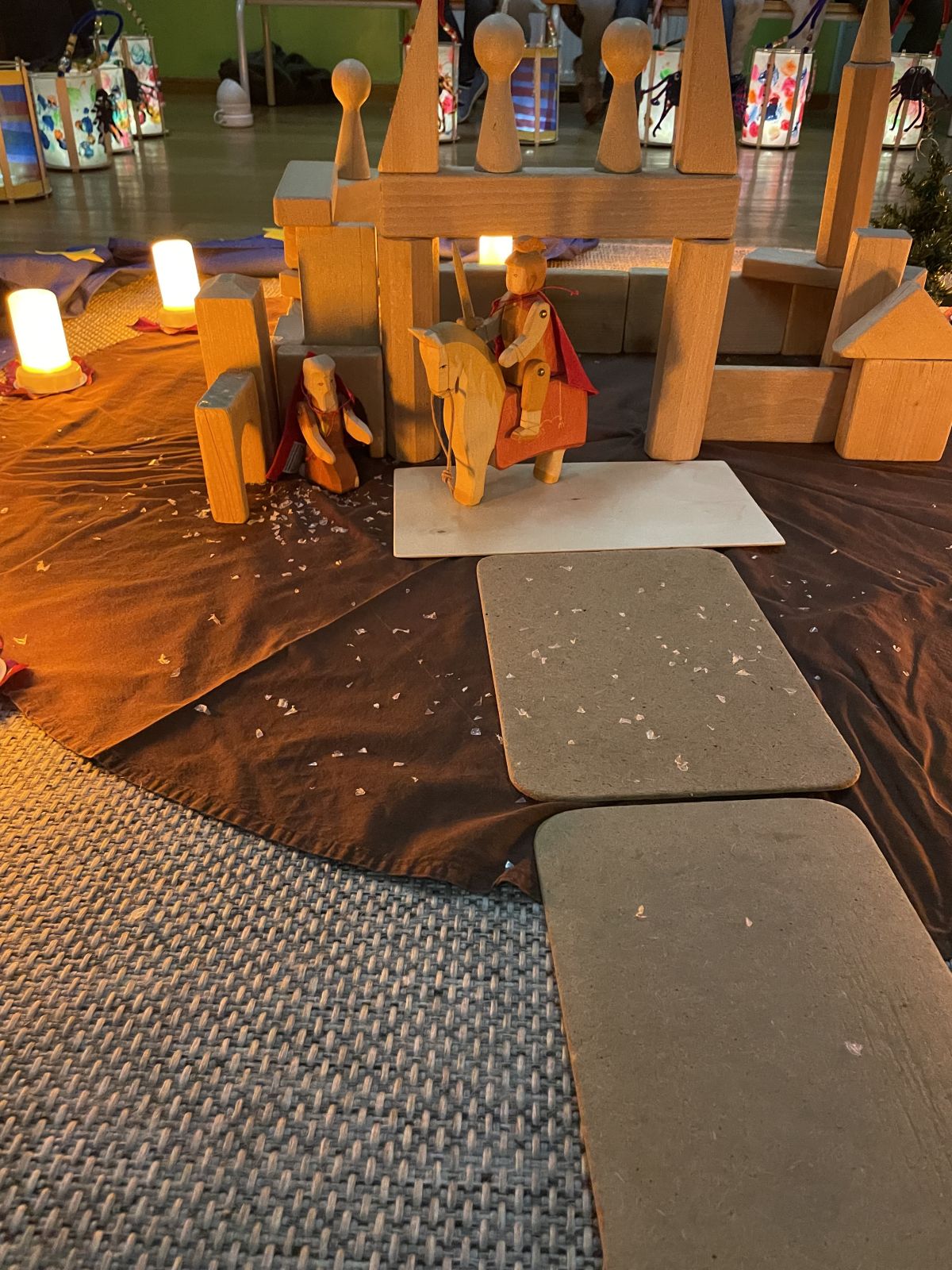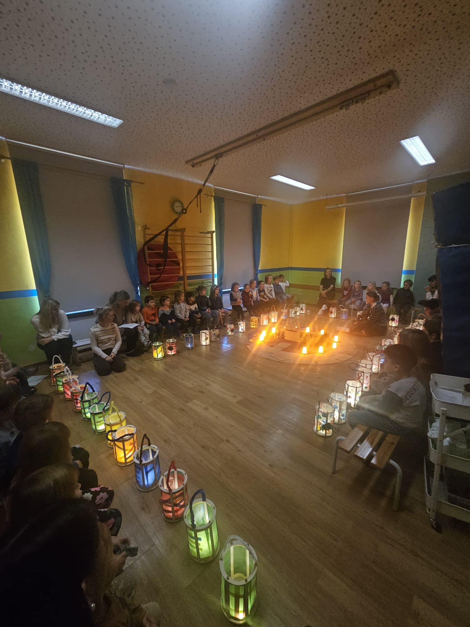 Jede Gruppe hat etwas vorbereitet, ein Lied oder ein Gedicht. dann wurde die Geschichte vom heiligen Martin gelegt und erzählt und zum Schluß konnten wir noch alle Laternen bei einem Laternentanz bewundern.